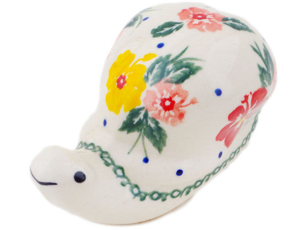 This Polish Pottery 4" Snail Figurine - Hibiscus Splendor is handmade and handpainted by the Ceramika Bona factory in Boleslawiec, Poland.