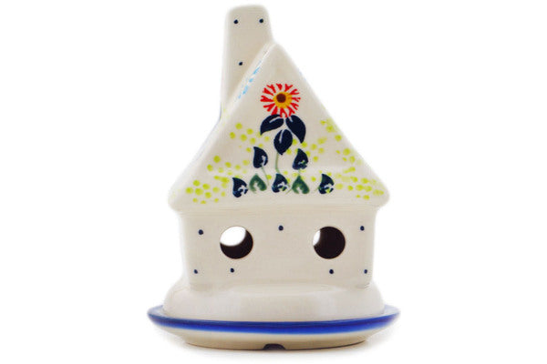 This Polish Pottery 5" House Shaped Candle Holder - Long-stemmed Beauties is handmade and handpainted by the Ceramika Bona factory in Boleslawiec, Poland.