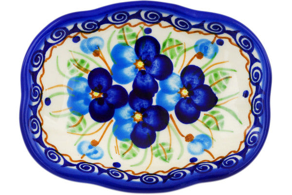 This Polish Pottery 5" Soap Dish - Blue Pansy is handmade and handpainted by the Ceramika Bona factory in Boleslawiec, Poland.