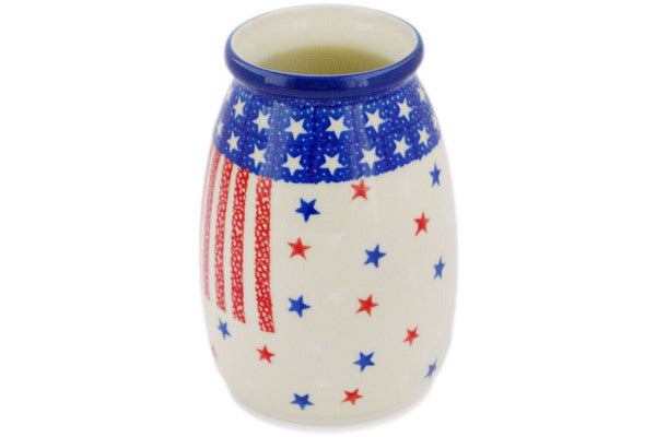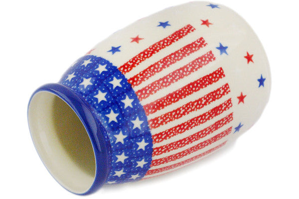 This Polish Pottery 5" Vase - American Stars And Stripes is handmade and handpainted by the Ceramika Artystyczna factory in Boleslawiec, Poland.