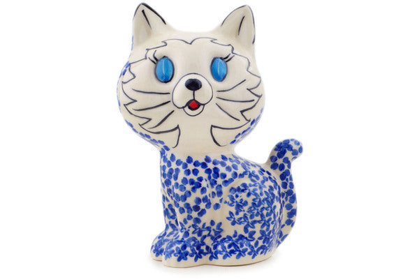 This Polish Pottery 6" Cat Figurine - Cobalt Fantasy is handmade and handpainted by the Ceramika Bona factory in Boleslawiec, Poland.