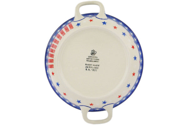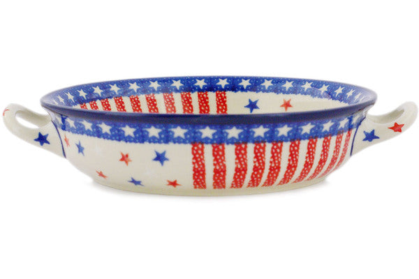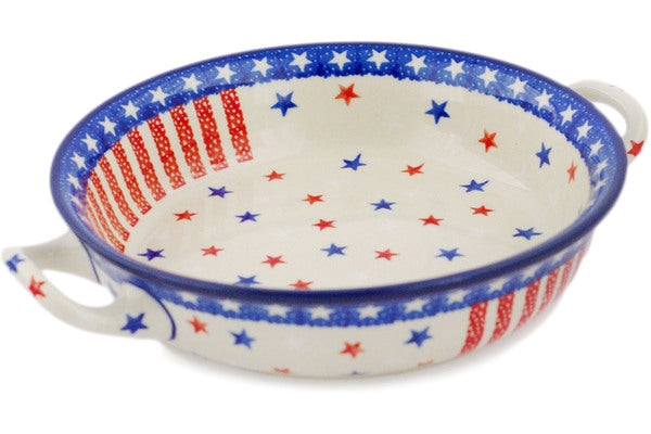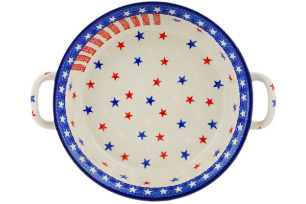This Polish Pottery 8" Round Baker with Handles - American Stars And Stripes is handmade and handpainted by the Ceramika Artystyczna factory in Boleslawiec, Poland.