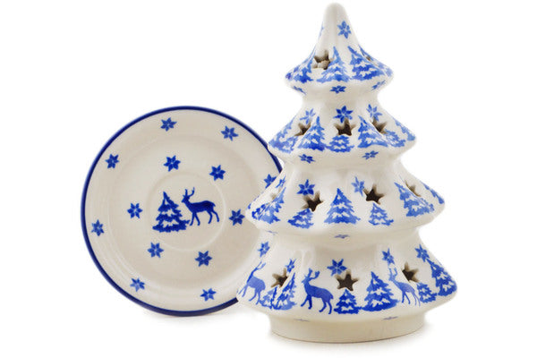 This Polish Pottery 7" Christmas Tree Candle Holder - Winter Deer is handmade and handpainted by the Ceramika Artystyczna factory in Boleslawiec, Poland.