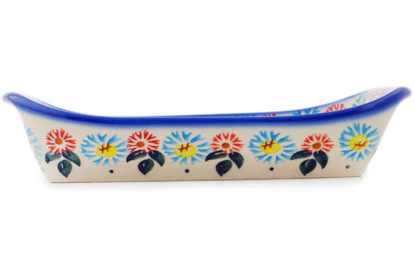 This Polish Pottery 7" Platter with Handles - Long-stemmed Beauties is handmade and handpainted by the Ceramika Bona factory in Boleslawiec, Poland.