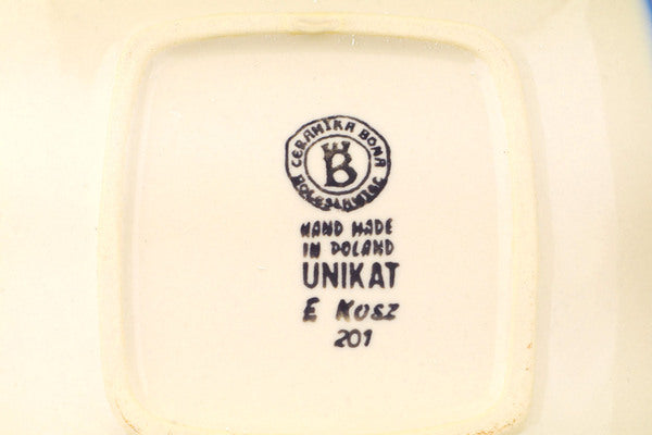 This Polish Pottery 7" Square Plate - Red Peacock Eye is handmade and handpainted by the Ceramika Bona factory in Boleslawiec, Poland.