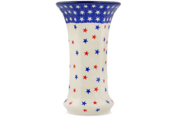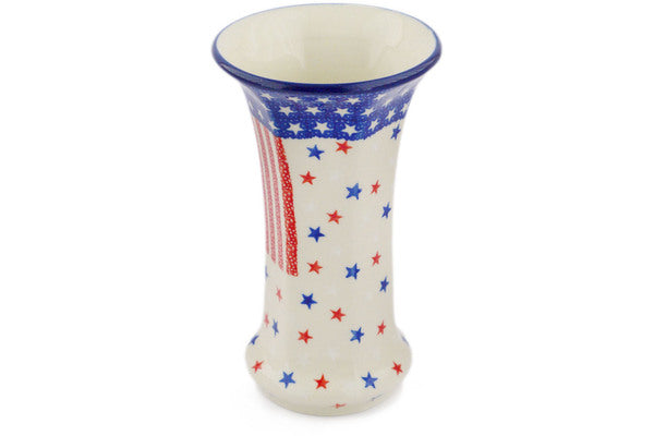 This Polish Pottery 7" Vase - American Stars And Stripes is handmade and handpainted by the Ceramika Artystyczna factory in Boleslawiec, Poland.