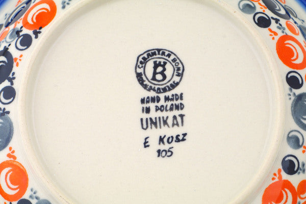 This Polish Pottery 9" Pasta Bowl - Red Peacock Eye is handmade and handpainted by the Ceramika Bona factory in Boleslawiec, Poland.