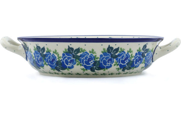 Medium Round Baker with Handles - Blue Rose