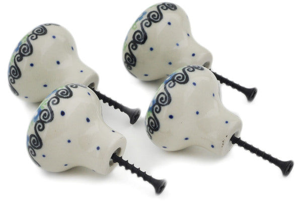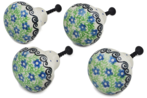 This Polish Pottery 1" Set of 4 Drawer Pull Knobs - Exotic Wreath is handmade and handpainted by the Ceramika Artystyczna factory in Boleslawiec, Poland.