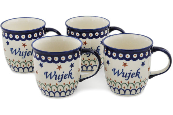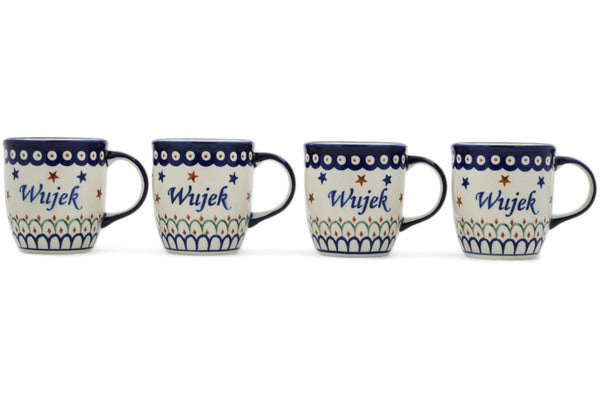 This Polish Pottery 12 oz Set of 4 Mugs - Wujek-Uncle is handmade and handpainted by the Zaklady Ceramiczne factory in Boleslawiec, Poland.