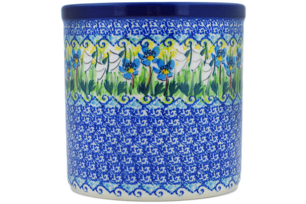 This Polish Pottery 6" Utensil Jar - Delightful Day is handmade and handpainted by the Ceramika Artystyczna factory in Boleslawiec, Poland.