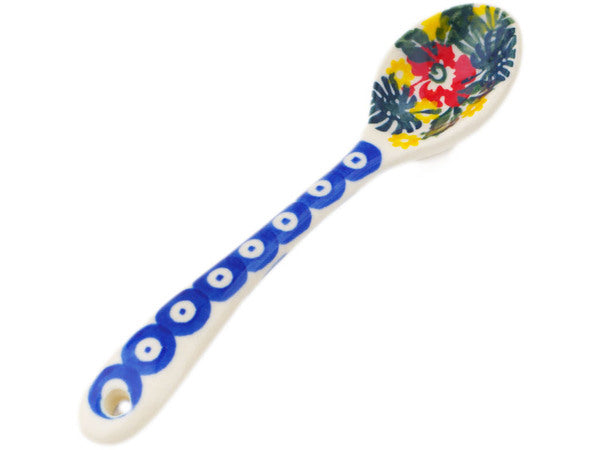 This Polish Pottery 6" Spoon - Tropical Peacock is handmade and handpainted by the Ceramika Bona factory in Boleslawiec, Poland.