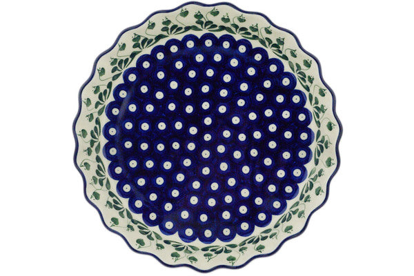 This Polish Pottery 10" Fluted Pie Dish - Bleeding Heart Peacock is handmade and handpainted by the Ceramika Artystyczna factory in Boleslawiec, Poland.