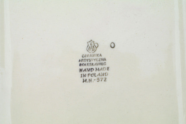 This Polish Pottery 10" Square Plate - Bleeding Heart Peacock is handmade and handpainted by the Ceramika Artystyczna factory in Boleslawiec, Poland.