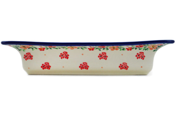 This Polish Pottery 12" Square Platter - Rosey Starburst Poppy is handmade and handpainted by the Ceramika Artystyczna factory in Boleslawiec, Poland.