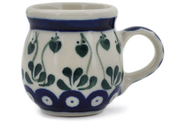 This Polish Pottery 2" Mini Mug - Bleeding Heart Peacock is handmade and handpainted by the Ceramika Artystyczna factory in Boleslawiec, Poland.