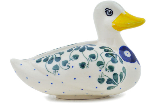 This Polish Pottery 5" Duck Figurine - Bleeding Heart Peacock is handmade and handpainted by the Ceramika Artystyczna factory in Boleslawiec, Poland.
