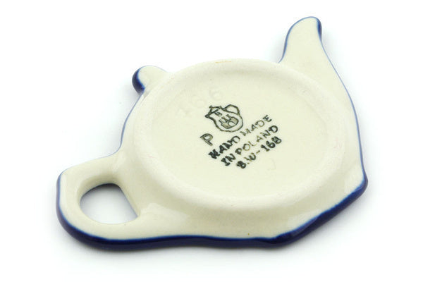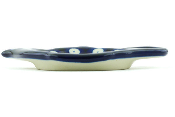 This Polish Pottery 5" Tea Bag or Lemon Plate - Bleeding Heart Peacock is handmade and handpainted by the Ceramika Artystyczna factory in Boleslawiec, Poland.