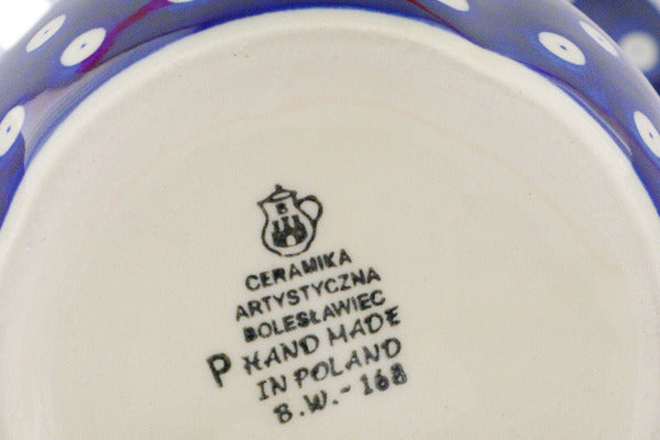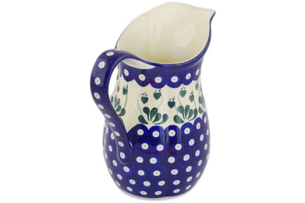 This Polish Pottery 51 oz Pitcher - Bleeding Heart Peacock is handmade and handpainted by the Ceramika Artystyczna factory in Boleslawiec, Poland.