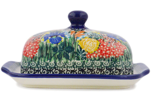 This Polish Pottery 7" Butter Dish - Iris Bouquet is handmade and handpainted by the Ceramika Artystyczna factory in Boleslawiec, Poland.