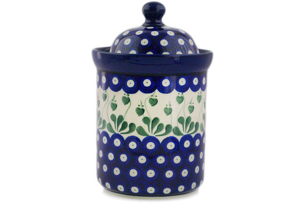 This Polish Pottery 8" Cookie Jar - Bleeding Heart Peacock is handmade and handpainted by the Ceramika Artystyczna factory in Boleslawiec, Poland.
