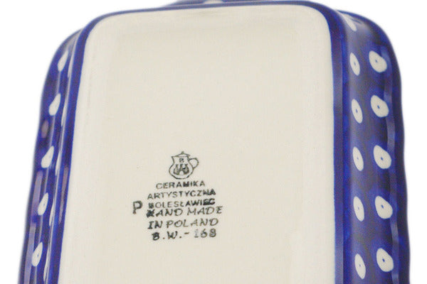This Polish Pottery 9" Butter Dish - Bleeding Heart Peacock is handmade and handpainted by the Ceramika Artystyczna factory in Boleslawiec, Poland.
