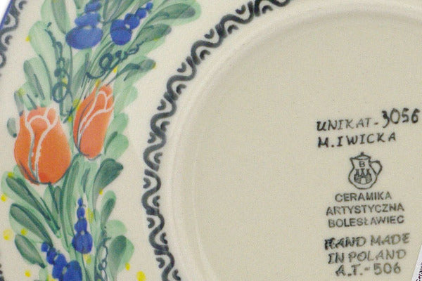 This Polish Pottery 9" Pasta Bowl - Tulip Bouquet is handmade and handpainted by the Ceramika Artystyczna factory in Boleslawiec, Poland.