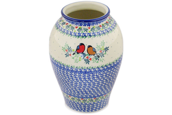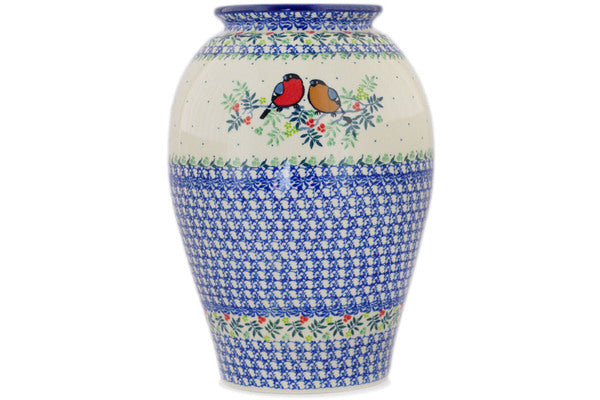 This Polish Pottery 12" Vase - Robin & Wren is handmade and handpainted by the Ceramika Artystyczna factory in Boleslawiec, Poland.