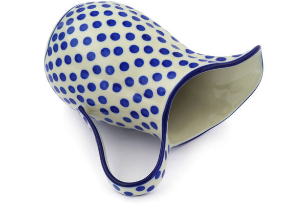 This Polish Pottery 30 oz Pitcher - Polka Dot Delight is handmade and handpainted by the Ceramika Artystyczna factory in Boleslawiec, Poland.