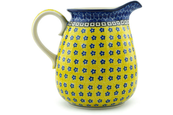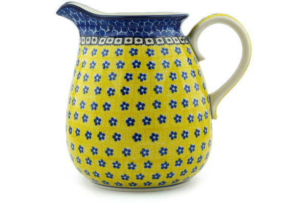 This Polish Pottery 67 oz Pitcher - Sunburst Daisies is handmade and handpainted by the Ceramika Artystyczna factory in Boleslawiec, Poland.