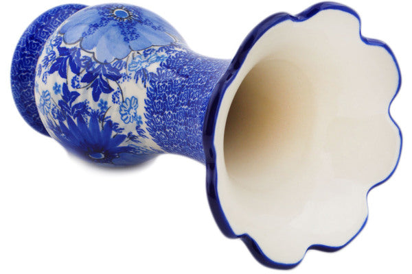 This Polish Pottery 9" Vase - Blue Wildflower Patch is handmade and handpainted by the Ceramika Artystyczna factory in Boleslawiec, Poland.
