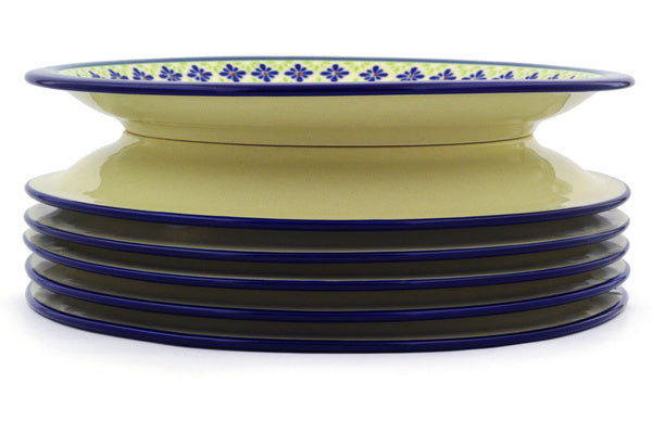 This Polish Pottery 11" Set of 6 Plates - Green Gingham Peacock is handmade and handpainted by the Zaklady Ceramiczne factory in Boleslawiec, Poland.