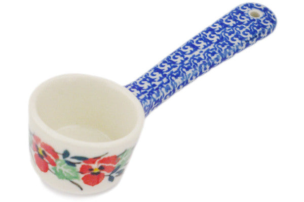 This Polish Pottery 1 oz Measuring Cup - Red Pansy is handmade and handpainted by the Ceramika Artystyczna factory in Boleslawiec, Poland.