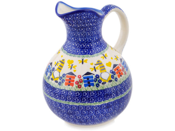 This Polish Pottery 83 oz Pitcher - Beekeeper Gnome is handmade and handpainted by the Ceramika Nina factory in Boleslawiec, Poland.