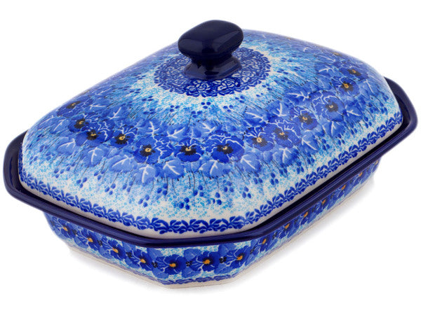 This Polish Pottery 10" Dish with Cover - Deep Winter is handmade and handpainted by the Ceramika Artystyczna factory in Boleslawiec, Poland.