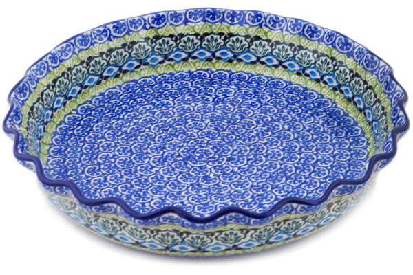 This Polish Pottery 10" Fluted Pie Dish - Artistic Boho is handmade and handpainted by the Ceramika Artystyczna factory in Boleslawiec, Poland.