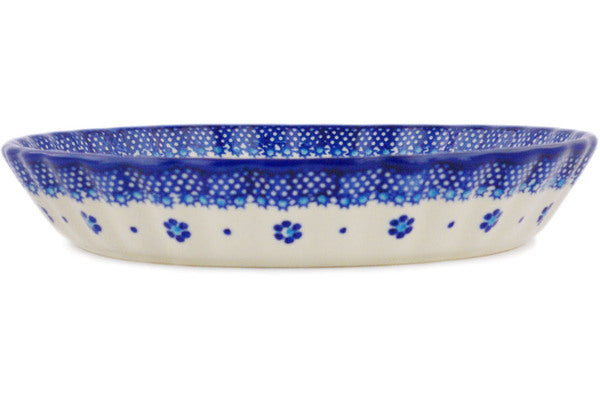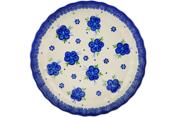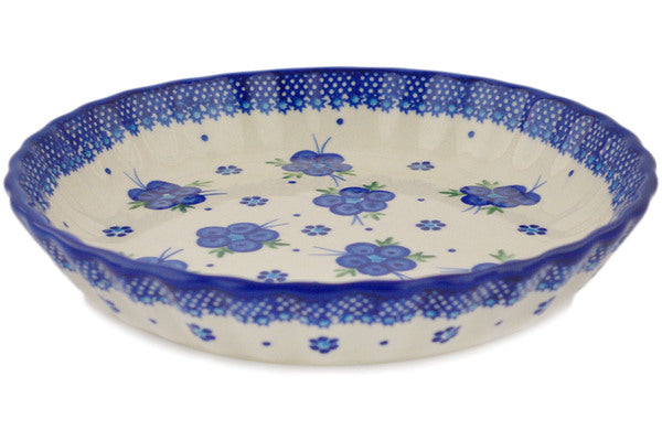 This Polish Pottery 10" Fluted Pie Dish - Bleu-Belle Fleur is handmade and handpainted by the Ceramika Bona factory in Boleslawiec, Poland.