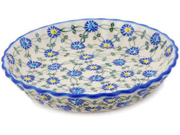 This Polish Pottery 10" Fluted Pie Dish - Blue Thistle Beauty is handmade and handpainted by the Ceramika Bona factory in Boleslawiec, Poland.
