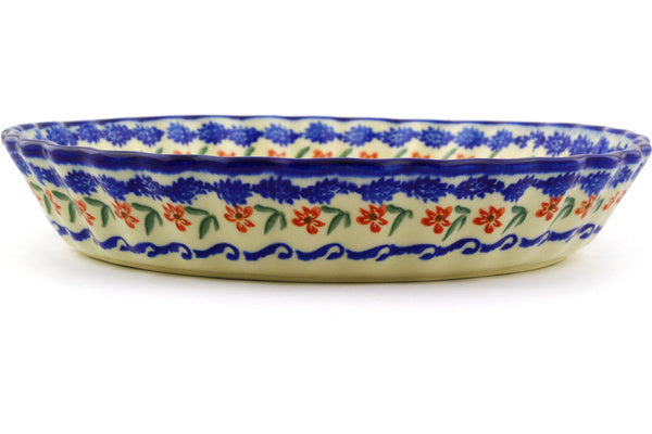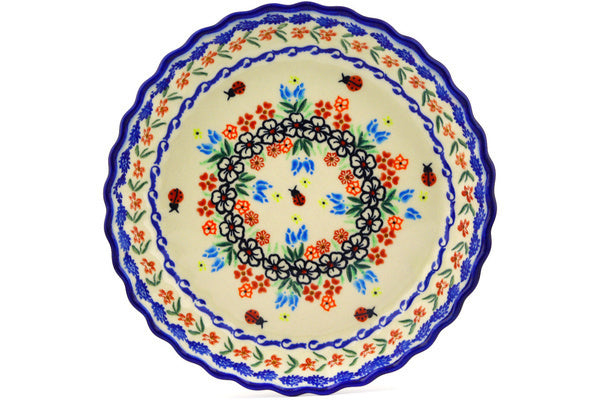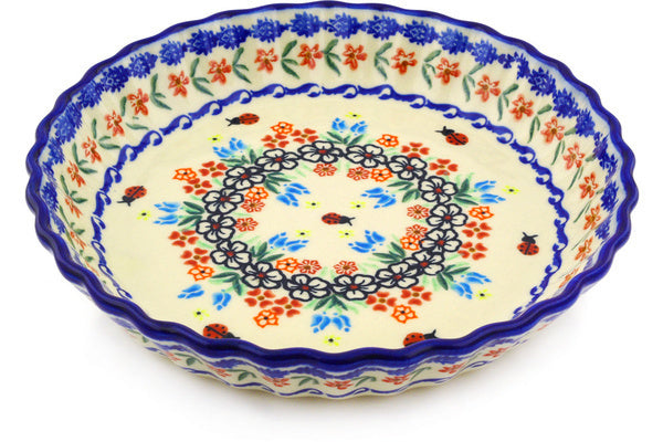 This Polish Pottery 10" Fluted Pie Dish - Fanciful Ladybug is handmade and handpainted by the Ceramika Bona factory in Boleslawiec, Poland.