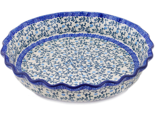 This Polish Pottery 10" Fluted Pie Dish - Petite Blue Vine is handmade and handpainted by the Ceramika Artystyczna factory in Boleslawiec, Poland.