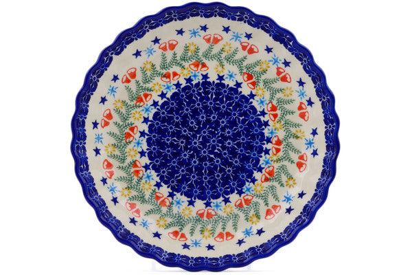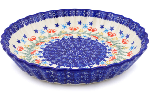 This Polish Pottery 10" Fluted Pie Dish - Wreath Of Bells is handmade and handpainted by the Ceramika Bona factory in Boleslawiec, Poland.