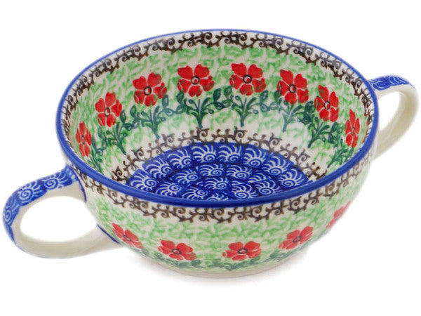 This Polish Pottery 10 oz Bouillon Cup - Maraschino is handmade and handpainted by the Ceramika Artystyczna factory in Boleslawiec, Poland.