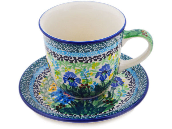 This Polish Pottery 10 oz Cup with Saucer - Spring Garden is handmade and handpainted by the Ceramika Artystyczna factory in Boleslawiec, Poland.