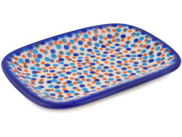 This Polish Pottery 10" Platter - Polka Dot Frenzy is handmade and handpainted by the Ceramika Bona factory in Boleslawiec, Poland.
