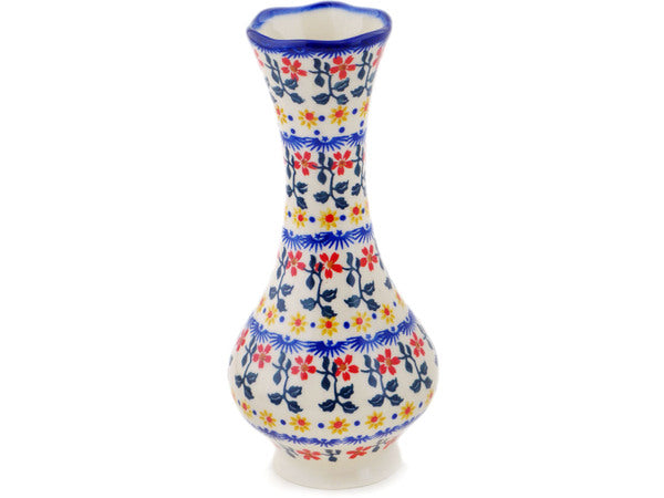 This Polish Pottery 10" Vase - Red Sunflower is handmade and handpainted by the Ceramika Bona factory in Boleslawiec, Poland.