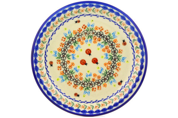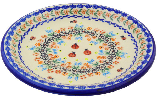 This Polish Pottery 11" Plate - Fanciful Ladybug is handmade and handpainted by the Ceramika Bona factory in Boleslawiec, Poland.