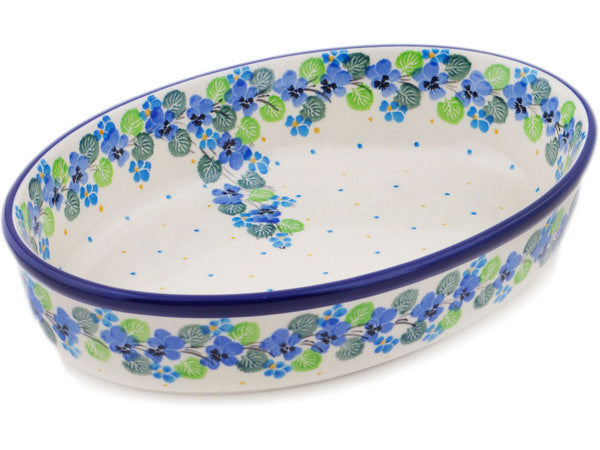 This Polish Pottery 11" Oval Baker - Waterfall Blooms is handmade and handpainted by the Ceramika Artystyczna factory in Boleslawiec, Poland.