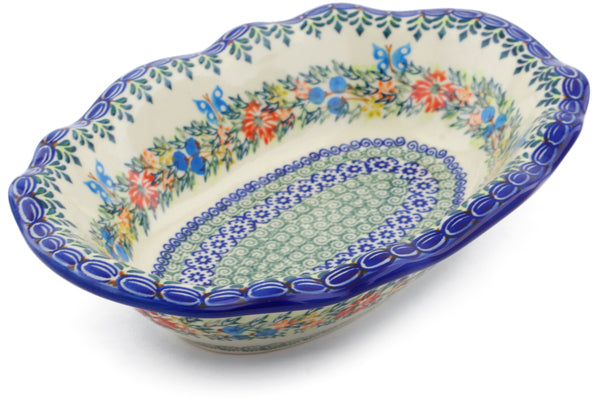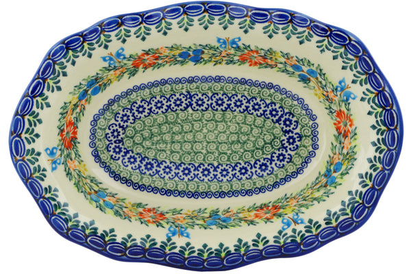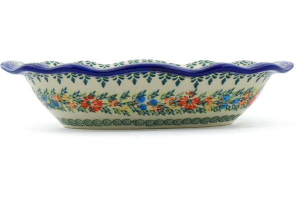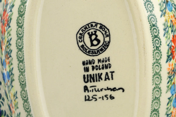 This Polish Pottery 11" Oval Bowl - Ring Of Flowers is handmade and handpainted by the Ceramika Bona factory in Boleslawiec, Poland.