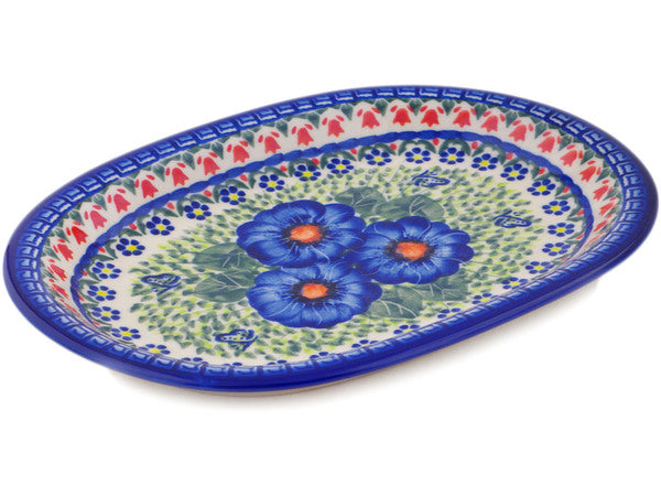 This Polish Pottery 11" Oval Platter - Brilliant Butterfly Popp is handmade and handpainted by the Ceramika Bona factory in Boleslawiec, Poland.