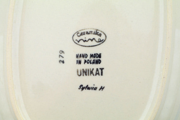 This Polish Pottery 11" Oval Platter - Gardens In Poland is handmade and handpainted by the Ceramika Nina factory in Boleslawiec, Poland.